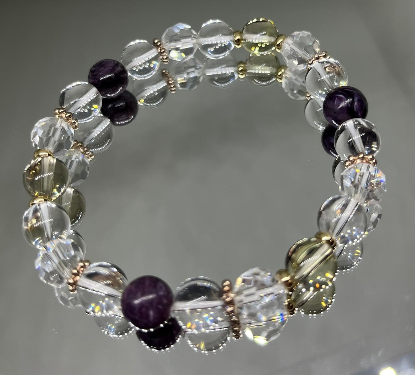 ー 粒サイズ : 約 8 ㎜(チャロアイト)/約 8 ㎜(レモンクォーツ)/約 8 ㎜(水晶)